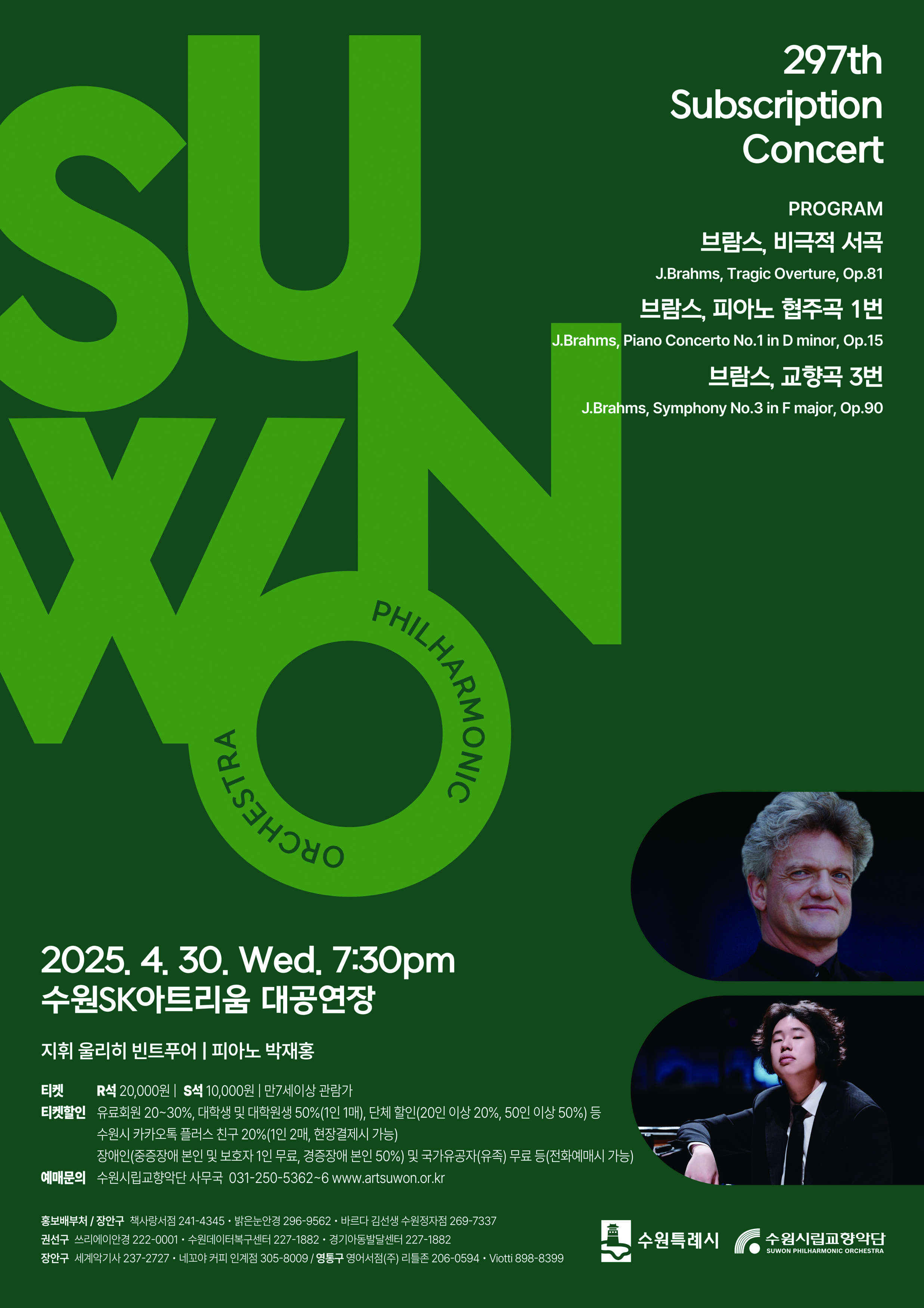 [마감] 4/30(수) 수원시립교향악단 제297회 정기연주회 - 브람스