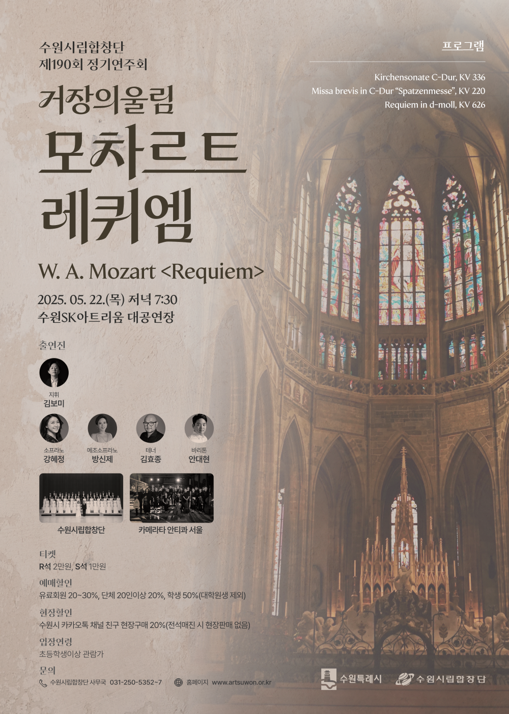 [마감] 5/22(목) 수원시립합창단 제190회 정기연주회 - 모차르트 레퀴엠