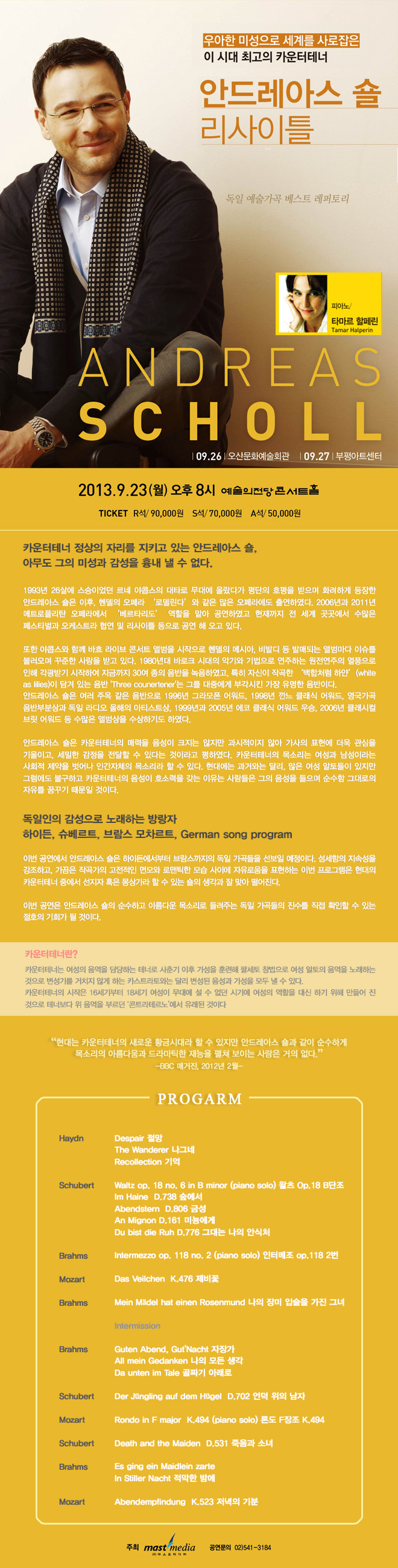 [마감] 9/27(금) 카운터 테너 '안드레아스 숄' 리사이틀