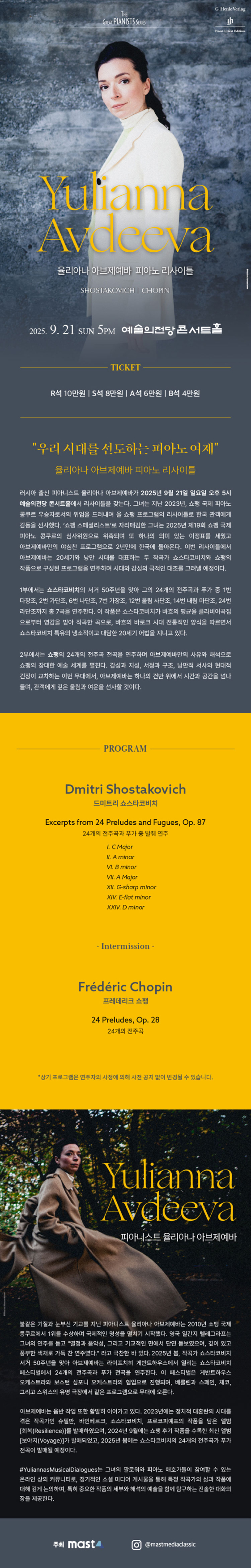 [마감] 9/21(일) 피아노 여제 '율리아나 아브제예바' 리사이틀