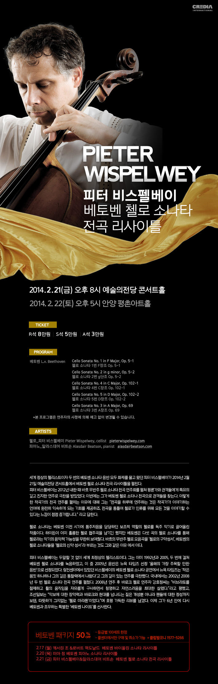 2014년 2월 21일 (금) 저녁 8시 피터 비스펠베이 베토벤 첼로 소나타