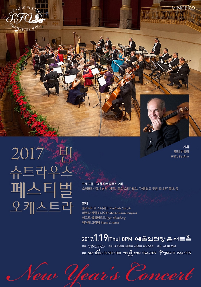 2004년 첫 내한을 시작으로 꾸준히 한국을 찾으며 왈츠로 신년을 여는 문화를 선도해온 빈 슈트라우스 페스티벌 오케스트라(SFOV)가 여덟 번 째 내한공연을 개최한다. (내한이력: 2004, 2006, 2009, 2011-12 임선혜, 2014 홍혜란, 2015 김은경)