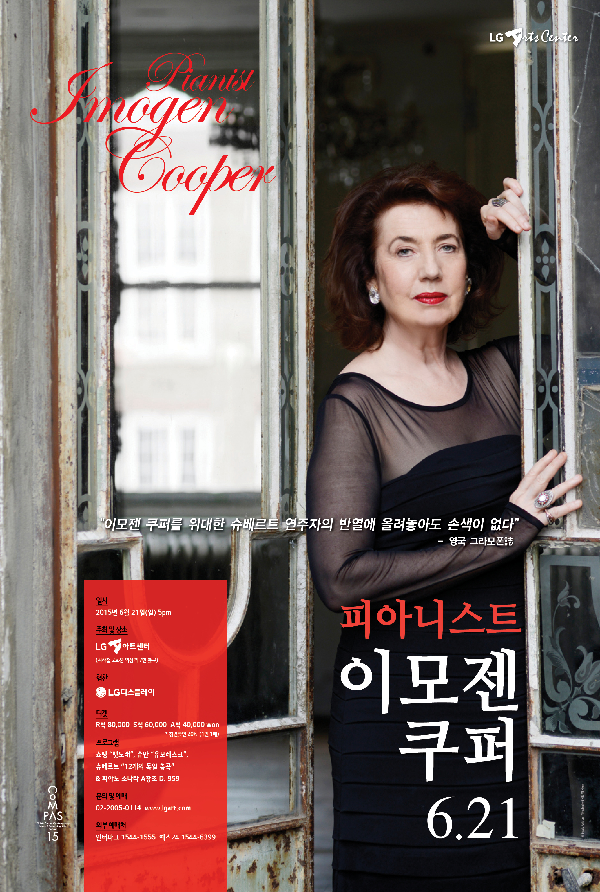 스비아토슬라프 리히테르, 라두 루푸, 알프레드 브렌델, 머레이 페라이어 등 슈베르트 피아노곡의 유명한 대가들 속에서 ‘숨은 명연’의 주인공으로 국내 애호가들 사이에 오랫동안 회자되고 있는 영국의 피아니스트 이모젠 쿠퍼(Imogen Cooper, 1949년 생)가 오는 6월 처음으로 한국 팬을 만난다.
