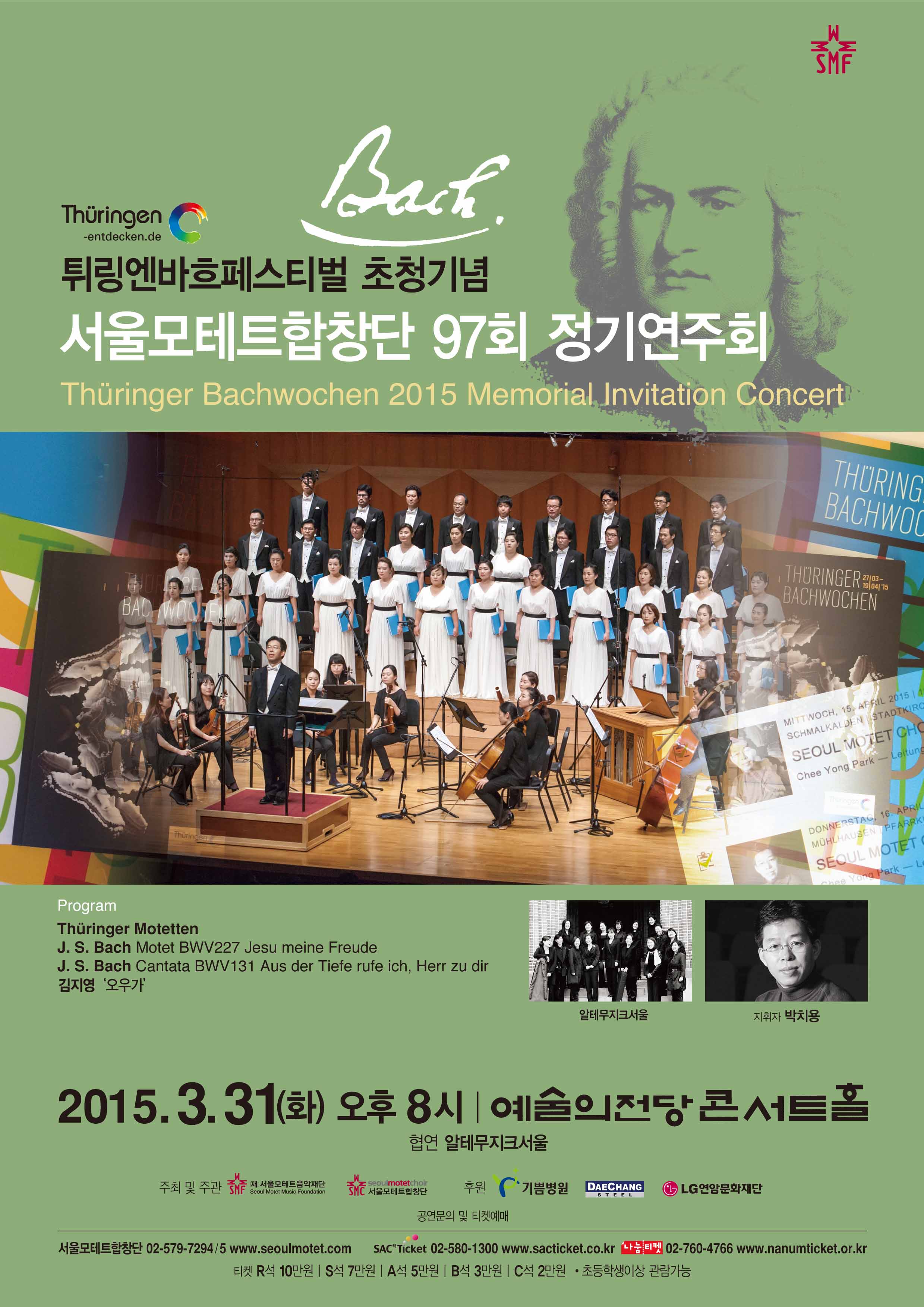 창단26주년을 맞는 서울모테트합창단은 2015년4월 세계적으로 권위있는 바흐페스티벌의 하창나인 튀링엔 바흐페스티벌(Thuringer BachWochen)에 초청되어 연주한다. 독일 Thuringer주의 아이젠나흐는 바흐의 고향이기도 하며 바흐집안의 역사와 함께 바흐의 음악적 역사가 살아 숨 쉬는 뜻 깊은 장소이다. 이곳 튀링엔주에서 매년3~5월 사이에 진행되는 튀링엔바흐페스티벌은 톤 쿠푸만, 필립 헤르베헤 등 바흐 음악의 권위자들을 비롯하여 세계적으로 유명한 대가들과 음악단체들을 초청해서 연주회를 개최하는 바흐페스티벌로 서울모테트합창단은 한국단체로(동양인)는 최초로 초청되어 연주하게 된다.