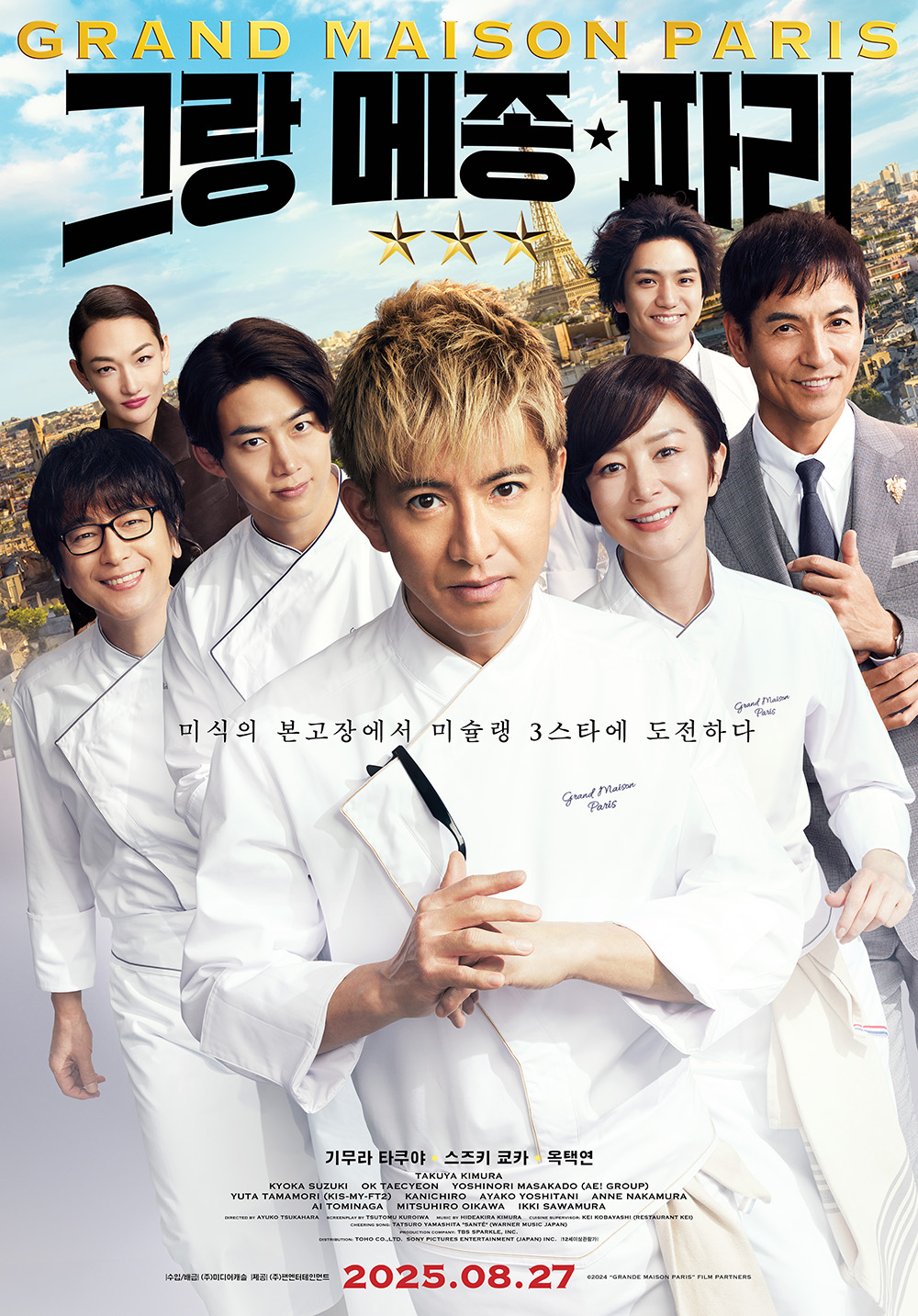 일본 대표 배우 기무라 타쿠야와 한국의 대표 배우 옥택연이 만나 화제를 모은 영화 <그랑 메종 파리>가 오는 8월 롯데시네마를 통해 관객들을 찾아온다. <그랑 메종 파리>는 프랑스 파리에서 ‘만년 2스타’로 불리던 셰프 오바나가 동료들과 함께 진짜 파인다이닝의 최정상을 향해 나아가는 치열한 도전을 그린 작품. 이 영화는 미슐랭 스타를 목표로 고군분투하는 셰프들의 열정과 팀워크를 그려내 화제를 모았던 드라마 [그랑 메종 도쿄]의 감동을 고스란히 이어간다. 전작의 이야기를 기반으로 미식의 본고장 파리를 배경으로 한층 더 치열하고 화려한 도전을 그려냈다. 파리의 실제 유명 레스토랑과 현지 문화를 사실적으로 담아내며, 아시아인 최초 프랑스 미슐랭 3스타를 획득한 ‘Restaurant KEI’ 코바야시 케이 셰프가 감수에 참여해 음식 연출의 완성도를 높이면서, 이를 통해 미식의 섬세한 세계와 인물 간의 드라마가 결합된 깊이 있는 스토리가 관객들의 오감을 사로잡을 예정이다.