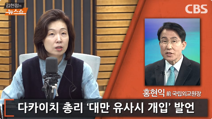 ◆ 홍현익> 그래서 미국도 인정을 했고 1979년에 수교할 때도 인정했고 72년에 키신저가 한테 인정한 거고요. 닉슨이 모택동한테 인정한 거죠. 한국도 마찬가지고요. 그래서 이 문제를 건드리면 중국은 반응할 수밖에 없는데 이게 여차하면 시진핑 주석이 4기 집권을 위해서 혹시 내년 말쯤이나 모종의 행동을 대만에 할 수도 있다는 가능성이 미국 CIA나 이런 데서 나오고 있기 때문에 이 시진핑 주석으로서는 4기 집권에 방해가 되는 거는 다 제거하려고 하겠죠. 근데 여기에 다카이치 총리가 만약에 그런 일이 벌어지면 일본의 존립 위기에 해당한다. 그러니까 일본은 전쟁을 불사하겠다. 이랬으니까 이게 어떻게 보면 다카이치 총리가 중국한테 걸려든 것 같아요.