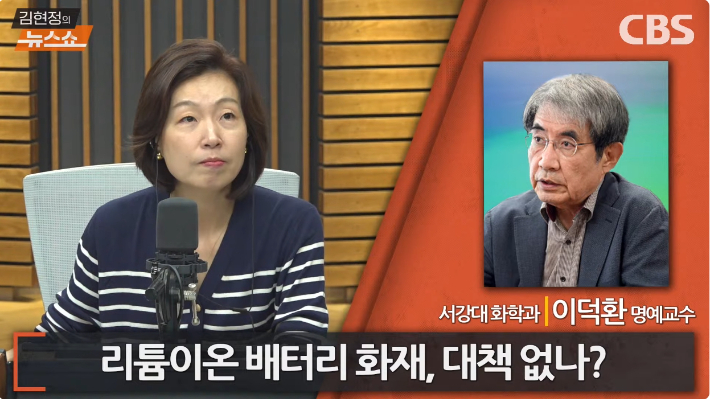 ◇ 김현정> 국가정보자원관리원에서 발생한 화재. 이번 화재도 과거 카카오 데이터센터 화재처럼 또 화성 아리셀 공장 화재처럼 또 항공기 기내 화재처럼 리튬 이온 배터리가 문제였습니다. 배터리 포비아라는 말까지 나올 정도인데요. 대체 리튬이온 배터리라는 게 뭐길래 얼마나 광범위하게 쓰이고 있길래 이렇게 화재가 자주 발생하는 걸까요? 또 예방할 방법은 없는 걸까요? 어제는 저희가 인터뷰를 통해서 국가정보자원관리원의 허술한 정보 관리 문제를 지적했다면 오늘은 리튬이온 배터리 자체에 집중해 보겠습니다. 서강대학교 화학과 명예교수죠, 이덕환 교수 연결이 돼 있습니다. 이덕환 교수님, 나와 계십니까?