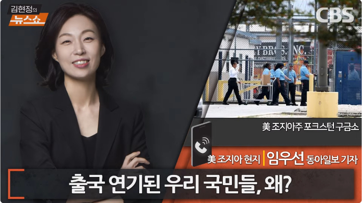 ◆ 임우선> 예, 지금 구금소가 있는 조지아주 포크스턴에서는 이곳에 나와 있는 한국 기업 관계자분들이 초조한 마음으로 추가되는 소식을 기다리고 계십니다. 그리고 구금소 앞에는 어제부터 우리나라 취재진뿐 아니고 외신 기자들 대기를 하고 있었고요. 사실 어제까지만 해도 오늘 당연히 전세기 편으로 우리 국민들이 귀국을 할 수 있으리라 생각을 했었거든요. 그런데 예상치 못하게 출국이 지연되면서 좀 되게 당황스러운 상황이었고 앞으로 벌어질 상황들을 좀 대기하고 있는 상황이에요.