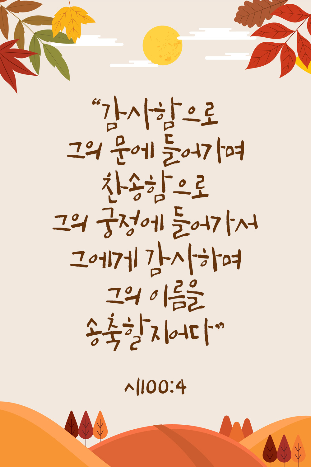 시편은 천국의 문에 들어가는 열쇠가 감사라고 말하고 있네요.