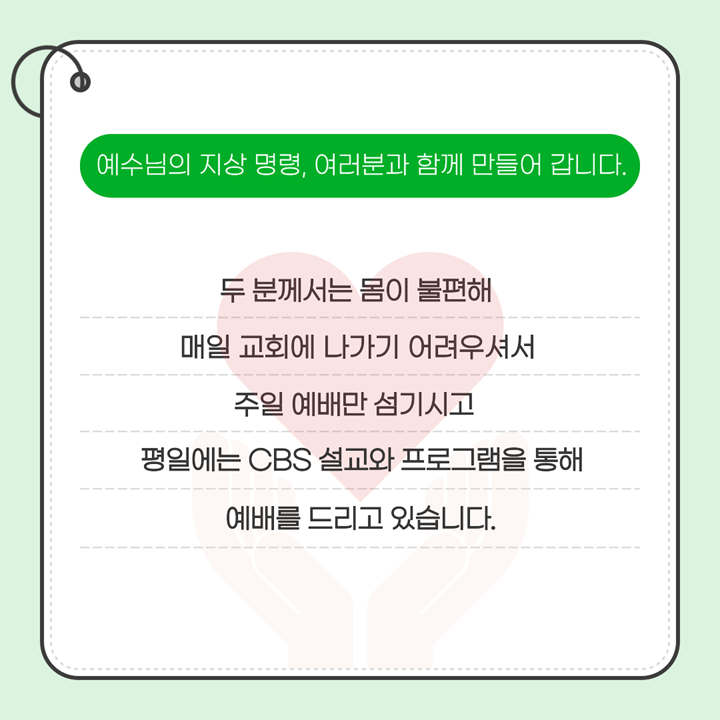 주일 예배만 섬기시고 평일에는 CBS 설교와 프로그램을 통해