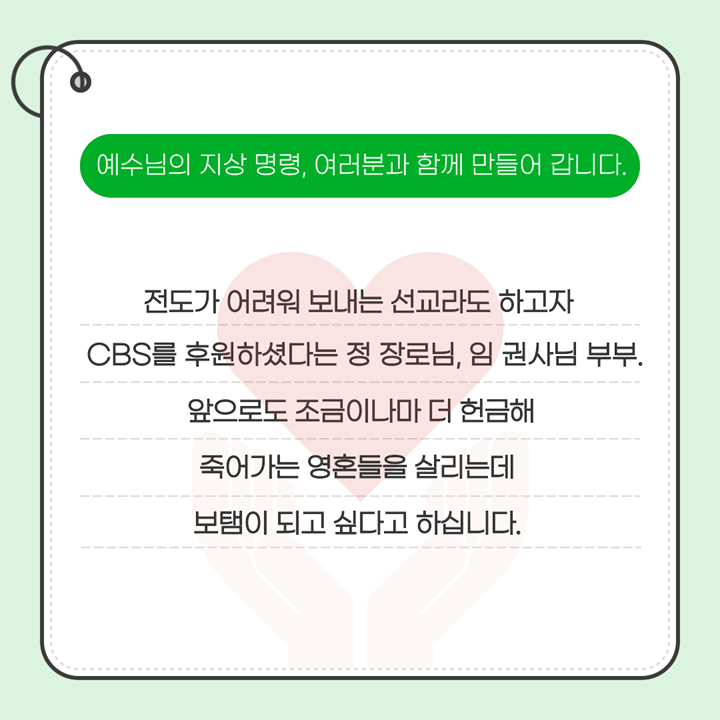 앞으로도 조금이나마 더 헌금해 죽어가는 영혼들을 살리는데 보탬이 되고 싶다고 하십니다.