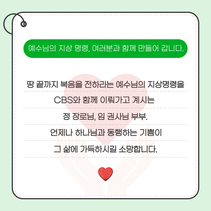 CBS와 함께 이뤄가고 계시는 정 장로님, 임 권사님 부부.
