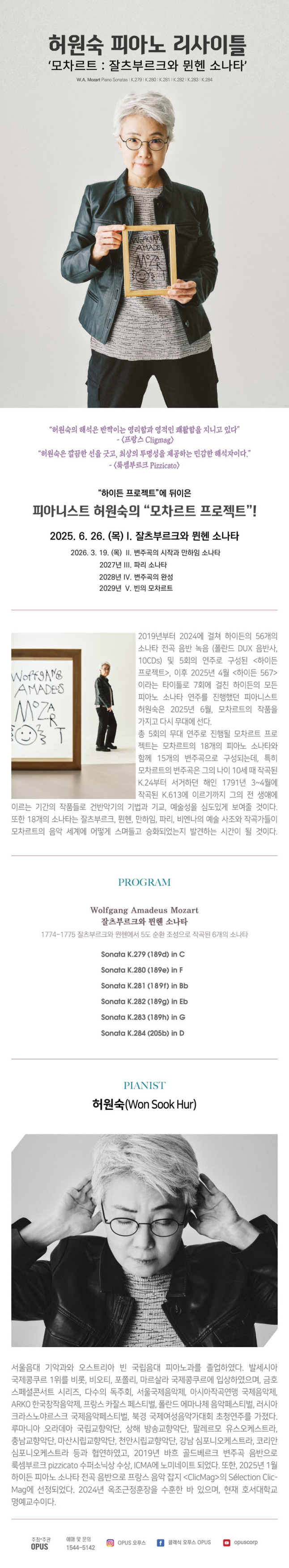 [마감] 6/26(목) 허원숙 피아노 리사이틀 - 모차르트 : 잘츠부르크와 뮌헨 소나타