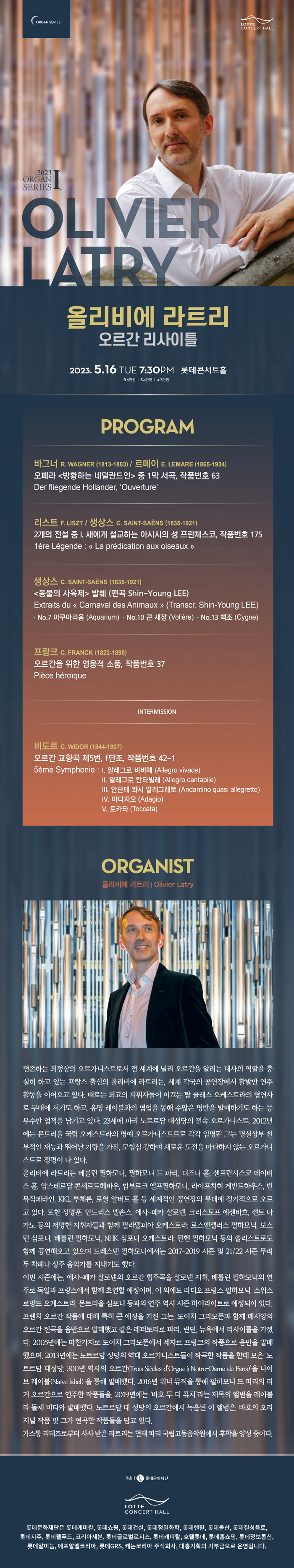 [마감] 5/16(화) 올리비에 라트리 오르간 리사이틀