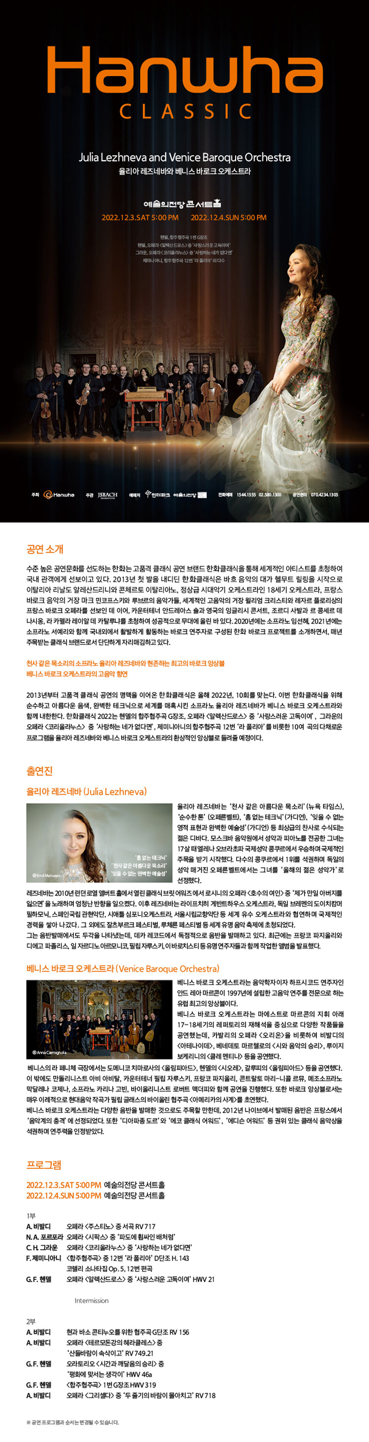 [마감] 12/3(토)] 한화클래식 - 율리아 레즈네바&베니스바로크오케스트라