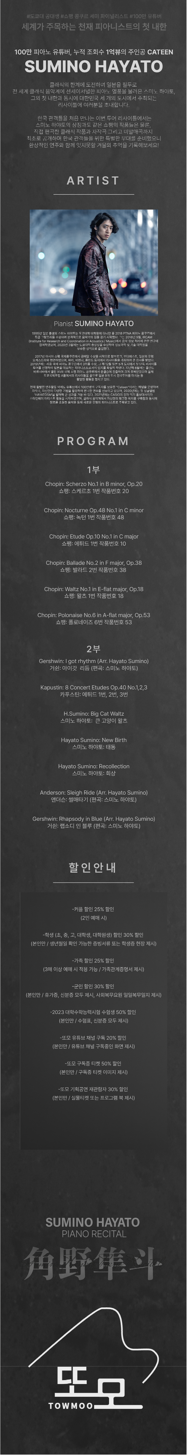[마감] 12/7(수), 15(목) 스미노 하야토 피아노 리사이틀