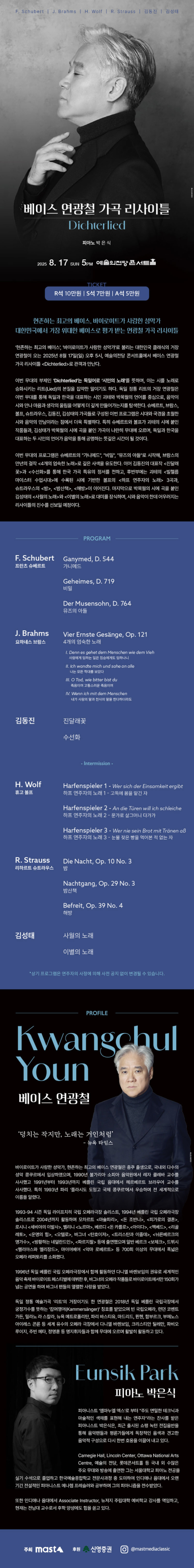 [마감] 8/17(일) 베이스 연광철 가곡 리사이틀 - Dichterlied(시인의 노래)