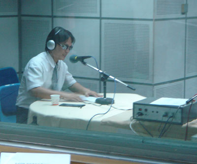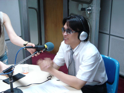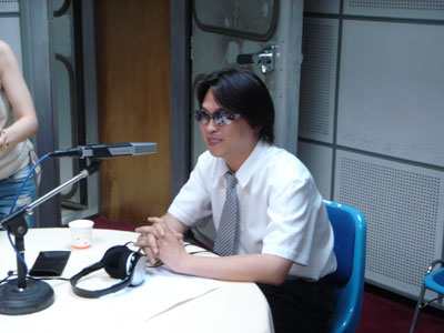 스튜디오 밖에서 방송중인 이현덕씨