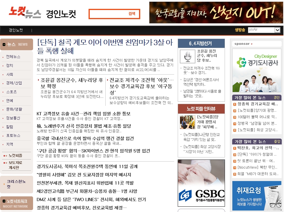 <경인노컷> 웹홈페이지는 자체적으로 운영되지만 그곳에 실리는 모든 뉴스는 각종포탈에 노출되는 연동방식을 취하고 있다.