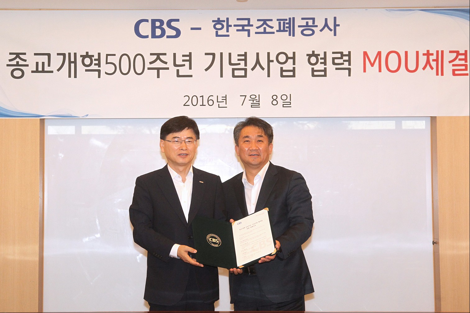 CBS(사장 한용길)와 한국조폐공사(사장 김화동)는 지난 8일 서울 CBS 본사에서 양해각서(MOU)를 체결하고 종교개혁 500주년 기념메달 등 기념사업에 협력하기로 했다.