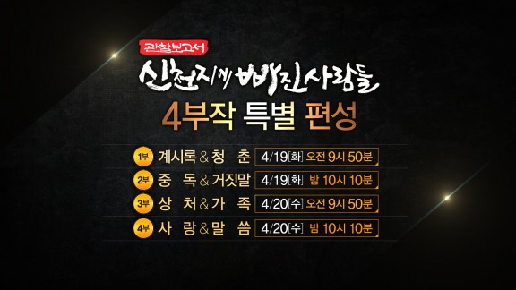 오는 4월 19일과 20일 이틀에 걸쳐 특별 편성한다.