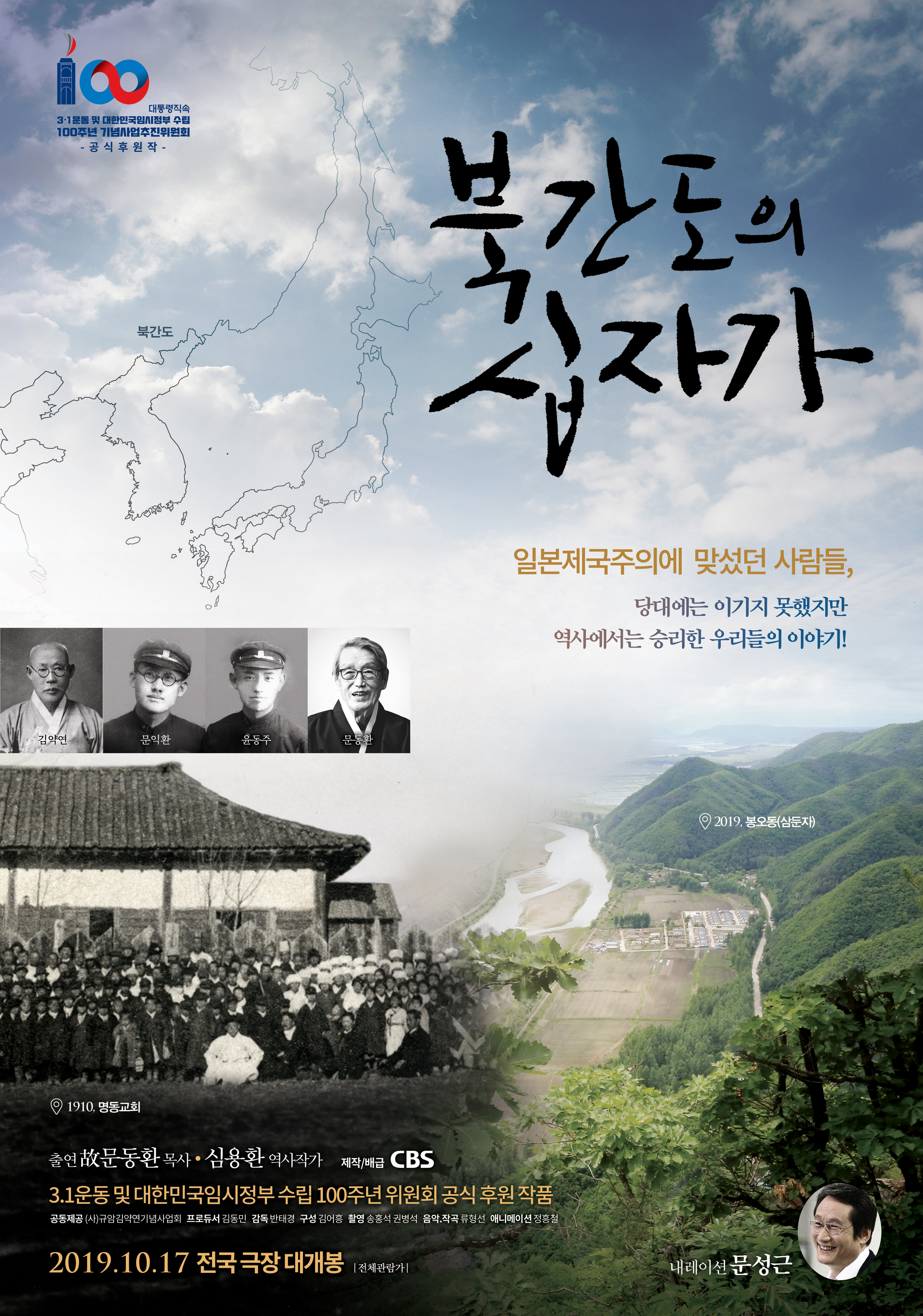 3.1운동 및 대한민국임시정부 수립 100주년 기념사업 추진위원회가 공식 후원하고 CBS가 제작한 다큐멘터리 영화 <북간도의 십자가>가 오는 10월 17일 전국 극장에서 개봉한다.