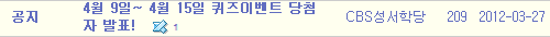 4월 9일~ 4월 15일 퀴즈이벤트 당첨자 발표!