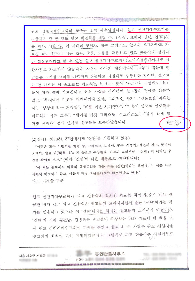 명예훼손 소송을 제기한 신천지 교주 이만희는 당시 수원지법에 낸 소장에서