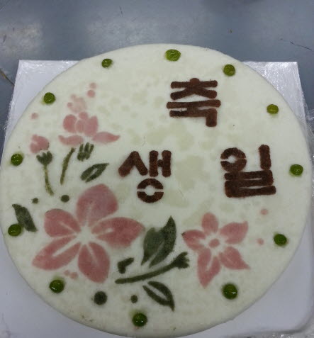 고운 빛깔의 축 생일 떡 사진을 올립니다.