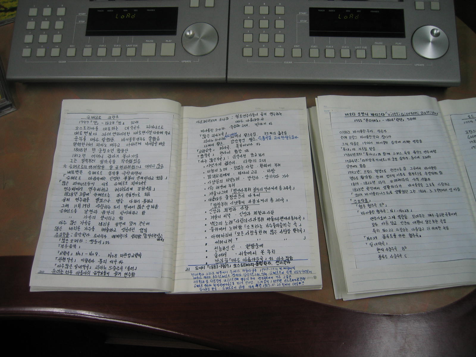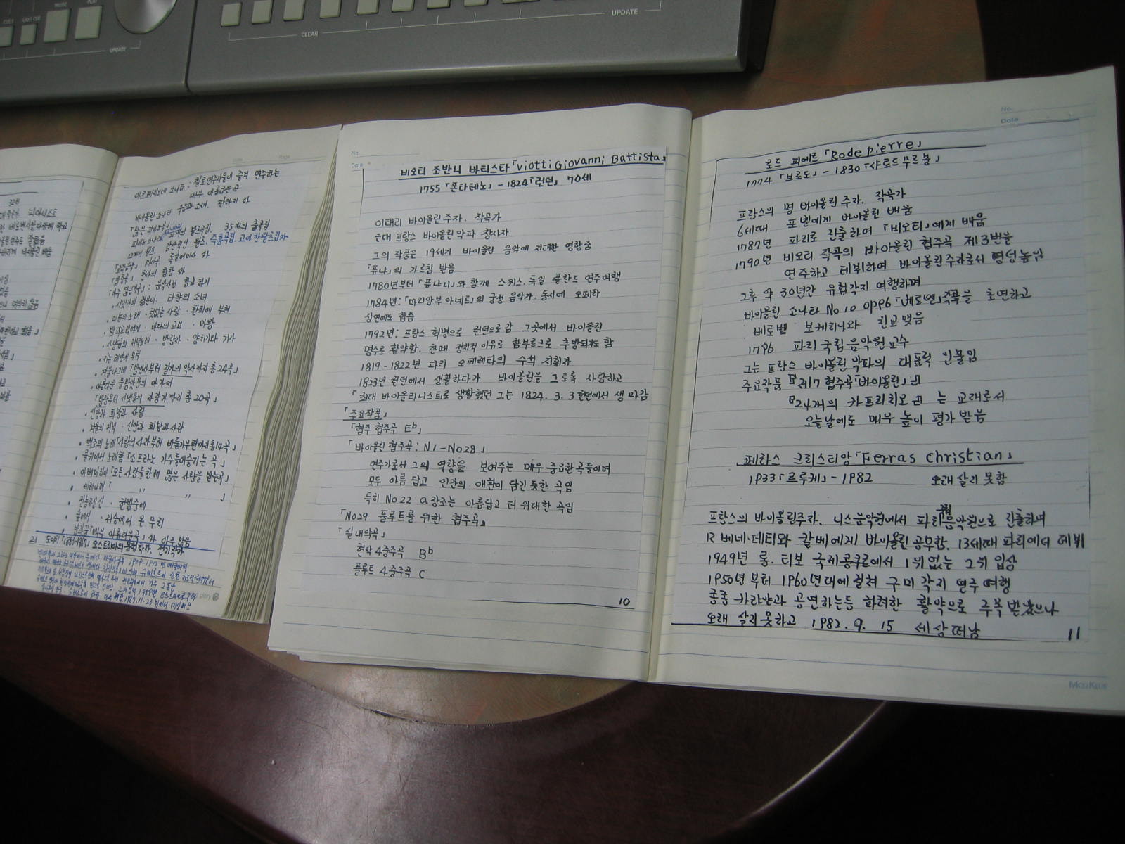 두 권의 노트엔 바이얼린주자, 건반악지 주자라는 제목으로