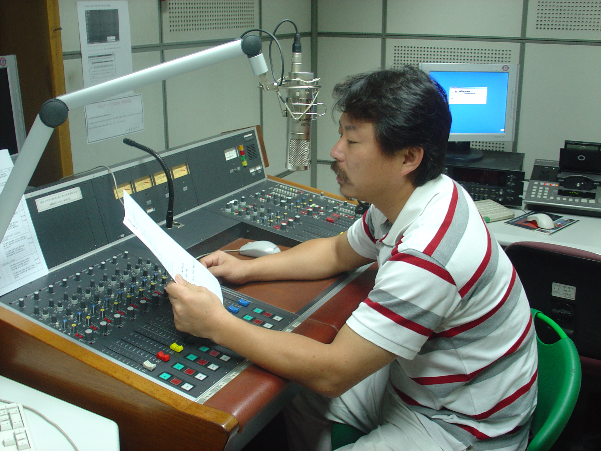 김필원씨가 건너편 스튜디오에서 FM 매거진을 진행하고 있는 모습입니다.(스튜디오 유리에 반사된 그림자의 주인공은?)