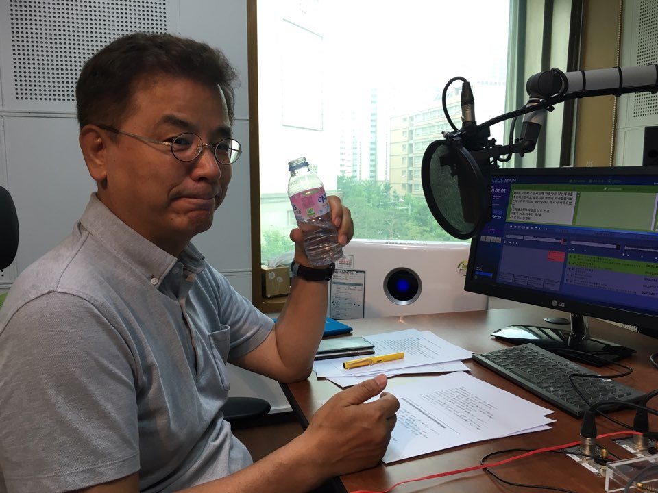 목을 축이며 더위를 식히는 강석우 DJ..^^