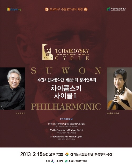 ** 공연 신청은 <공연 신청합니다> 게시판에 제목 말머리 [수원시립교향악단] 달고 신청 사연 남겨주세요 ** 1. 일시 : 2013년 2월 15일(금) 저녁 7시 30분 2. 장소 : 경기도문화의전당 행복한대극장 3. 초대인원 : 10쌍 (1인 2매, 총 20매) 4. 작품설명 : 수원시립교향악단 제221회정기연주회 2013 차이코프스키 사이클Ⅰ ‘2013 Tchaikovsky CycleⅠ’ 지휘 김대진 2008년 수원시립교향악단의 제6대 상임지휘자로 취임한 김대 진은 '건반위의 진화론자'라는 음악계의 평가처럼 최정상의 피아니 스트에서 지휘자로 다시 한 번 진화한 모습을 보여주고 있다. 지휘 자 김대진은 수원이라는 지역에 국한되어 활동하던 수원시립교향악 단을 치밀한 작품분석을 바탕으로 뛰어난 연주력을 갖춘 실력있는 교향악단으로 변화시킴으로써 지휘자로서의 능력을 선보이며 다시 한 번 음악계의 주목을 받고 있다. 2002년 한국음악협회에서 기악부문 한국음악상을 수상한 그 는 ‘주간동아’가 선정한 정치, 경제, 사회, 문화 등 분야별 40대 리더 40인 중 유일하게 음악인으로서 선정되었고, 2003년과 2005년 ‘동아일보사’에서 실시한 설문조사에서 ‘프로들이 뽑은 우 리 분야 최고’ 설문에서 ‘국내 최고의 연주가’로 연속 선정 되었다. 또한 2005년 문화관광부 올해의 예술상 음악부분, 예총예술문화상 음악부분에서 대상을 차지하였으며 2005년과 2007년 2회에 걸쳐 금호음악 스승상을 수상하였다. 한국에서는 오정주 교수를, 줄리어드에서는 마틴 캐닌 교수를 사사한 그는 1994년부터 한국예술종합학교 교수로 재직하면서 손열음, 김선욱 등 우수한 제자들을 배출한 명교수로도 인정받고 있으며 헌신적인 교육자로서 많은 이들에게 귀감이 되고 있다. 실내악에도 남다른 열정을 보이고 있는 그는 2007년 금호아트홀 챔버뮤직소사이어티를 창단하여 음악감독으로 활동하며 실내악의 발전에 앞장서고 있으며, 클리브랜드, 센다이, 클라라 하스킬, 파다레프스키, 라흐마니노프, 하마마츠, 베토벤, 부조니, 지나 박하우어 국제콩쿠르 등 세계 주요 음악 콩쿠르의 심사위원으로 위촉되어 세계 음악계의 주류로서 활약하며 대한민국 음악계의 위상을 높이고 있다. 2004년 예술의전당 청소년음악회 <김대진의 음악교실>을 통해 피아니스트 겸 지휘자로 활동 영역을 넓힌 그는, 2005년 수원시립교향악단 정기연주회를 통해 지휘자로 정식 데뷔하였다. 2008년 교향악축제의 지휘와 피아노 협연을 동시에 선보이며 매진을 기록한 그는 바로 수원시립교향악단 상임지휘자에 발탁되어 2009년 <뉴욕 카네기홀 연주회>, 2010년 <베토벤 교향곡&협주곡 전곡 시리즈>를 선보이며 수원시향을 국내 최고의 교향악단으로 격상시켰다. 이러한 도전과 노력은 상임지휘자 김대진과 수원시립교향악단이 2011년 객석예술인상을 함께 수상하는 영예를 안겨주었다. 상임지휘자 김대진은 2012년 수원시립교향악단 창단 30주년을 기념하며, 국내 교향악단 중 최초로 전국 9개 도시 순회연주를 기획, 관객들에게 큰 박수를 이끌어 내었다. 이어 2012수원국제음악제에서는 바이올리니스트 길 샤함, 첼리스트 미샤 마이스키, 소프라노 신영옥과 환상의 호흡을 맞추었고, 2012 랑랑 피아노 협주곡 콘서트에서 랑랑으로부터 “한국 최고의 오케스트라와 마에스트로 김대진에게 감사한다”라는 평가와 함께 성공적인 연주를 마쳤다 수원시립교향악단의 음악감독 겸 상임지휘자로서 ‘또 다른 30년’을 준비하는 김대진은 수원시향과 함께 대한민국을 대표하는 지휘자로 힘찬 비상(飛上)중이다. 바이올린 김민재 2001년 세계적 명성의 파가니니 국제 콩쿠르에서 한국인으로 서는 역대 최고인 2위를 차지하며 유럽음악계에 화려하게 등장했 던 바이올리니스트 김민재는 3살 때부터 바이올린을 시작하여 예원학교를 거쳐 서울예술고등학교 재학 중 한국예술종합학교에 예술영재로 입학하였다. 3년 만에 예술학사과정을 조기 졸업한 그는 미국 유학길에 올라 피버디 음악원 에서 4년간 전액장학금을 받으며 석사학위와 Graduate Performance Diploma를 취득하였다. 뉴저지 주립대 학에 Fellowship 장학생으로 박사과정을 시작한 그는 최우수학생 상(Irene Alm Memorial Award)을 받으며 최단기간, 최연소 박사학위를 취득함으로써 미국 음악 교육계에 한국인의 음악적 예지를 떨친 기대되는 바이올리니스트다. 부산 MBC 콩쿠르를 시작으로 중앙 음악 콩쿠르와 동아 음악 콩쿠르 등 국내 최고의 음악 콩쿠르를 모두 1위로 석권하며 국내 음악계의 기대를 한 몸에 받았던 그는 럿거스 콘체르토 콩쿠르를 우승했고 Ishikawa Music Academy 음악상등을 받았으며 특히 파가니니 콩쿠르에서 입상할 당시 현지 평론가들은 “완벽한 악기 컨트롤”, “감탄할만한 침착성과 강력한 음악적의지”를 동시에 보여준 바이올리니스트로 젊은 예비거장 김민재를 극찬하였다. 이후 활발하게 음악적 활동을 보여주고 있는 김민재는 한국, 미국, 일본, 오스트레일리아, 독일, 벨기에, 이탈리아, 네덜란드 등지에서의 독주회를 가졌고 KBS교향악단, 서울시립교향악단, 부산시립교향악단, 수원시립교향악단, 서울심포니 오케스트라, 코리아 심포니 오케스트라, 마