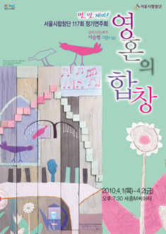 오는 2010년 4월 1일(목)~2(금) 오후 7시 30분에 서울시합창단의 제117회 정기연주회 “멋, 맛, 재미! 영혼의 합창”이 세종 M씨어터 에서 열린다. 이번 정기연주회는 오세종 지휘자가 서울시합창단의 상임지휘자로 취임한 후 첫 번째 공연이므로 그 의미가 크다. 연주회는 다섯가지 합창곡 레퍼토리로 다양하게 진행되며 멋, 맛, 재미! 라는 주제를 더욱 부각시킬 예정이다. 또한 무대를 채우는 그림과 영상, 로비에서 진행되는 전시회가 듣고 보는 즐거움을 함께 선사해 드릴 것이다.