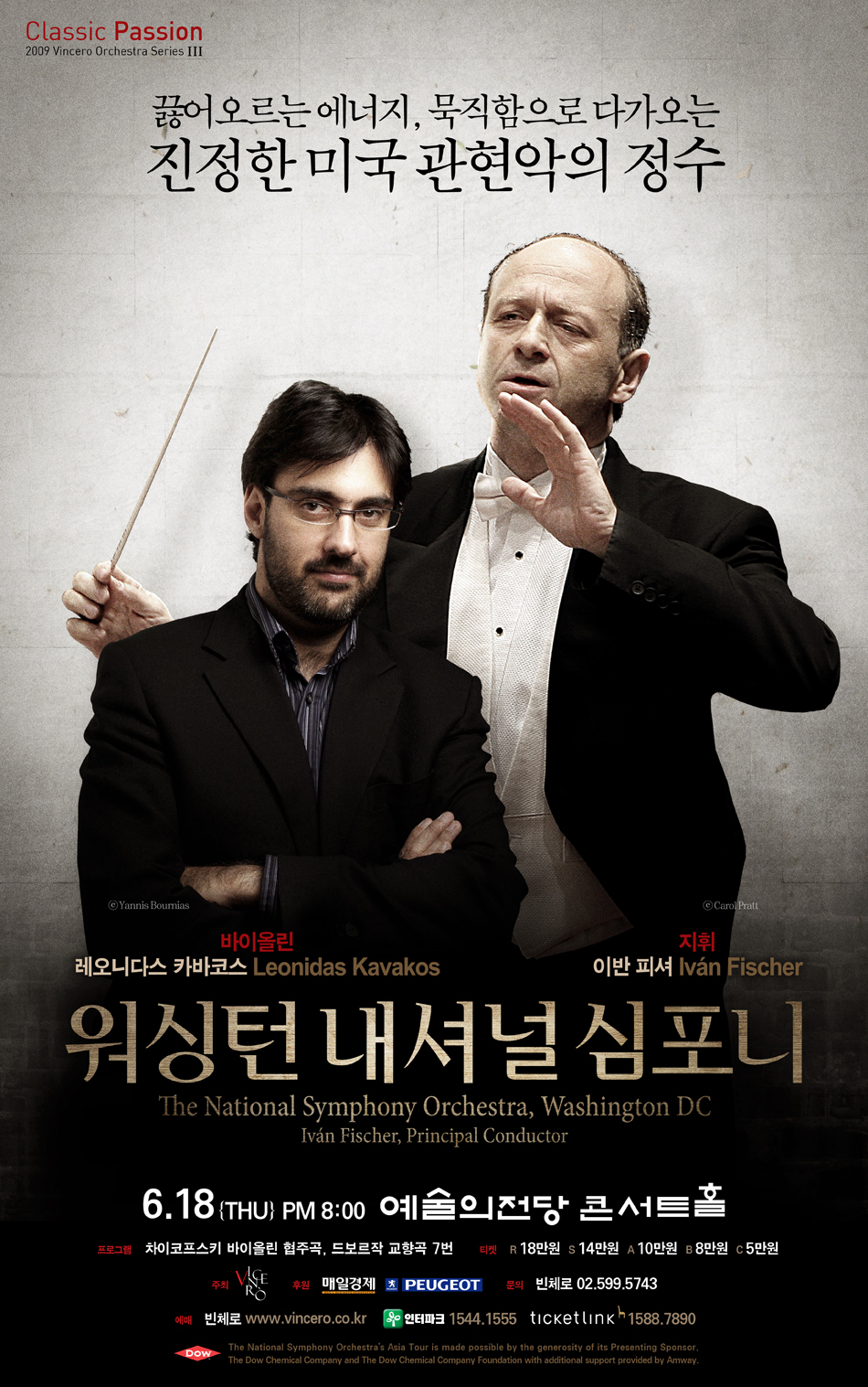본 내한공연은 1980년, 1983년에 이어 워싱턴 내셔널 심포니가 내한하는 세 번째 내한공연으로 지휘자 이반 피셔가 카바코스와 함께 중국, 타이완, 한국을 함께 하는 투어로 예정되었습니다.