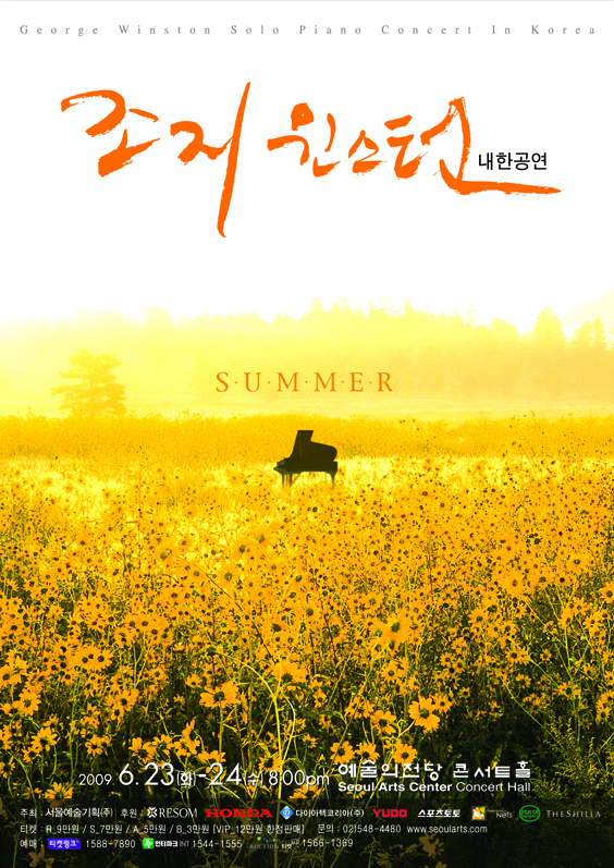 열립니다. 지난 2008년 겨울을 주제로 한 “Winter” 공연에서 겨울의 애틋한 정서를 노래했던 조지 윈스턴은 이번 2009 공연에서 여름을 주제로 신곡"Urban Lullaby" 를 비롯하여 Forest, Montana-A Love Story, Autumn 등의 앨범에 수록된 친근한 곡들을 함께 들려 줄 것입니다.