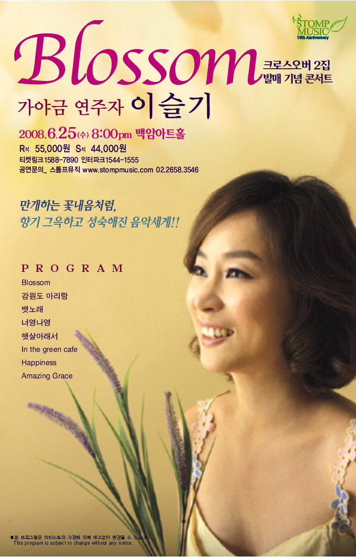 그로부터 1년 , 그녀는 한층 더 성숙해지고 깊어진 음악세계로 그녀를 기다리는 팬들 곁으로 돌아왔다.1집에서 햇살과 같은 그린빛 싱그로움과 상큼한 출발을 담았다면 이번 앨범에서는 만개하는 꽃이 그 완연한 향기와 기품을 자랑하듯, 「 Blossom 」이란 타이틀 아래 더욱더 깊어지고, 성숙한 가야금의 농현의 미를 담아내였다. 재즈 피아니스트 남경윤,한국인이 가장 사랑하는 일본 피아니스트 이사오 사사키가 참여, 한•일간의 공통의 정서를 이끌어 내는 등 다양한 시도와 이슬기만의 뚜렷한 음악적인 주관이 돋보이는 곡들로 이번 앨범은 채워졌다.