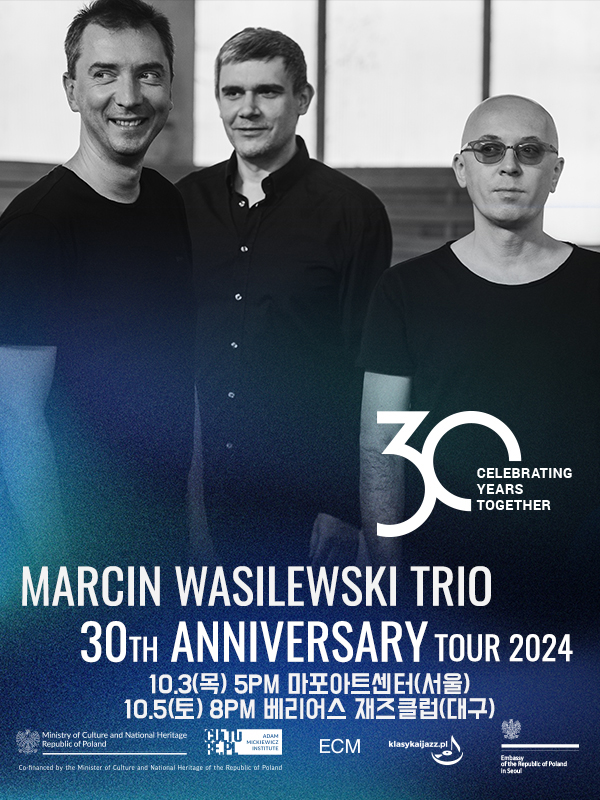 30년간 함께 한 유럽 최고의 재즈 피아노 트리오ECM 레이블의 간판 뮤지션이자 현재 유럽에서 가장 주목 받은 피아노 트리오 중의 한 팀인 마르친 바실레프스키 트리오가 2024년 결성 30주년을 맞이해 다시 한국을 찾는다.
