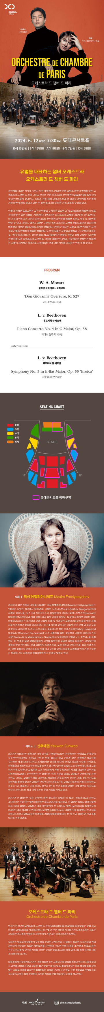 OCP는 당초 2020년 내한할 예정이었지만, 코로나19 팬데믹으로 공연이 취소됐었다. OCP는 바로크, 고전, 그리고 현대 음악까지 광범위한 레퍼토리를 선보이고 있는 유럽 주요 챔버 오케스트라다. 특히 '모차르트 형식'을 계승한 고전 음악 전문 단체로 명성이 높다. 이번 공연에서는 차세대 지휘자로 주목받고 있는 막심 에멜리아니체프의 지휘로 모차르트의 '돈 조반니' 서곡, 베토벤의 피아노 협주곡 4번, 베토벤의 교향곡 3번 '영웅'을 들려준다.