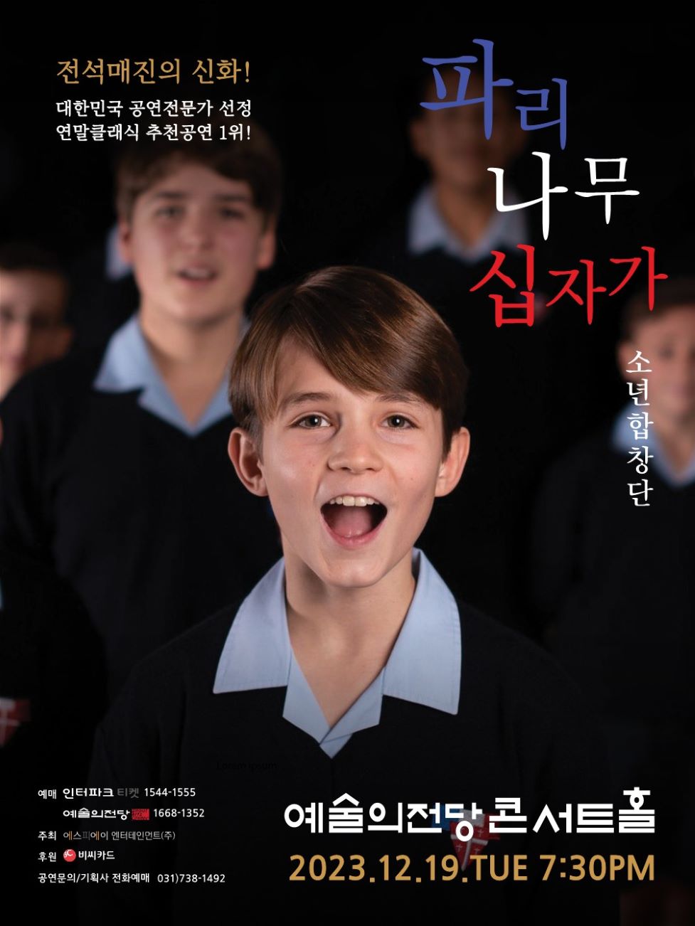 세계 유일의 아카펠라 소년합창단이자 “평화의 사도”로서 크리스마스 시즌과 연말 최고의 인기공연으로 정평이 나있는 파리나무십자가소년 합창단이 올해 12월 한국을 찾아온다. 예술의 순수성을 지키면서 대중성을 확보하는 것은 어려운 일이지만 1971년 첫 내한공연이래로 50여년 이상을 오직 뛰어난 실력과 감동을 선사하는 다양한 프로그램으로 한국관객들에게 큰 사랑을 받으며 대한민국 12월 연말공연의 상징적인 아이콘이 되어왔다.