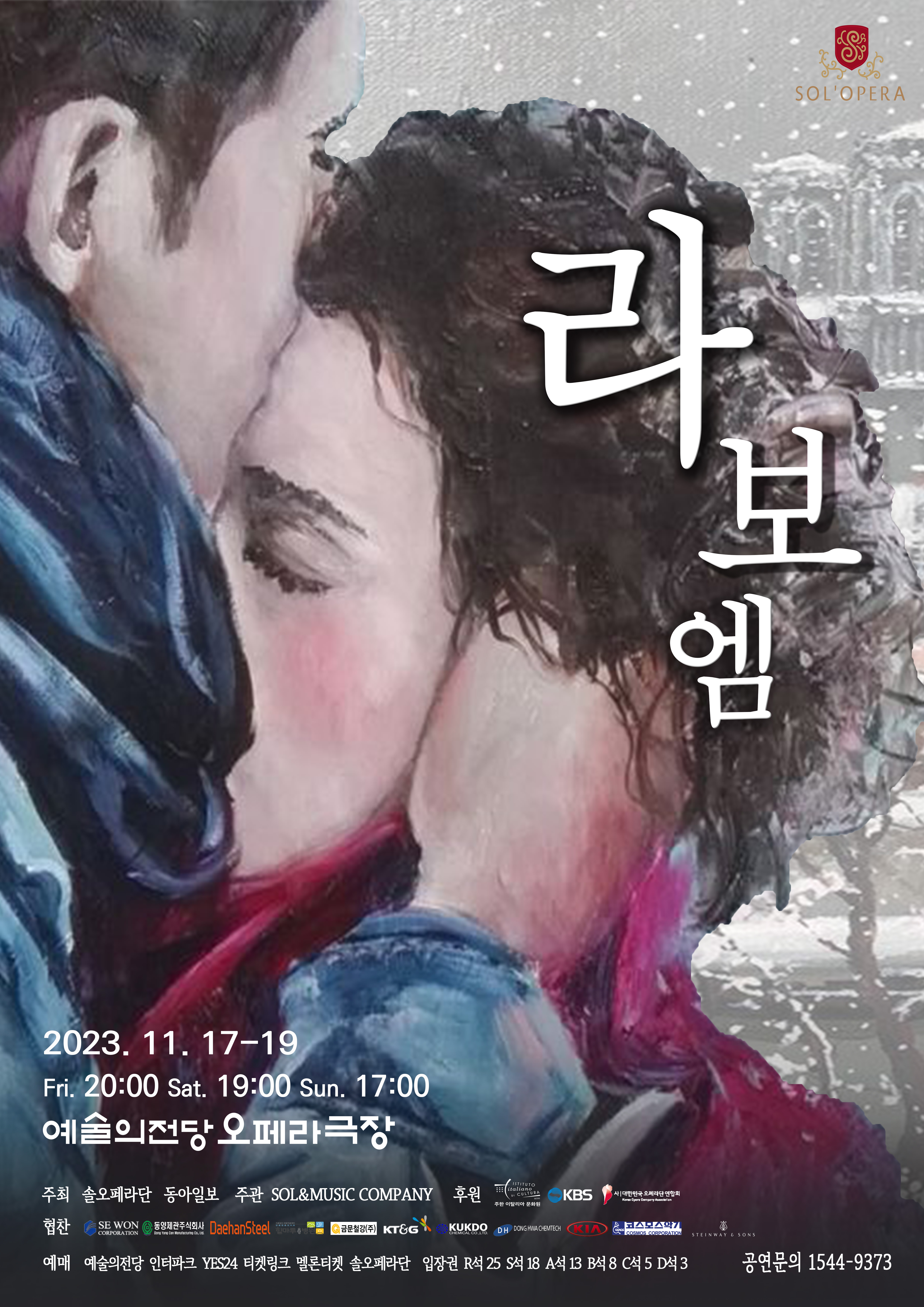 ★월요일부터 금요일까지 생방송 중에 50원의 정보이용료가 부과되는 # 9390 문자로 <공연 제목>과 <본인 성함>을 정확히 적으셔서 신청해주세요. 당첨자 분들에게는 개별적으로 당첨안내문자를 보내드립니다.★ 1. 일시 및 장소 2023년 11월 10일 (금) 저녁 7시 30분 부산문화회관 대극장 2023년 11월 17일 (금) 저녁 8시 서울 예술의전당 오페라극장 ▶위 공연 중 1개를 고르셔서 신청해주세요.◀ 2. 초대인원 : 10쌍 (1인 2매, 총 20매) 3. 작품설명 : 대한민국 오페라의 자존심 솔오페라단이 선보이는 또 하나의 명품 콘서트 오페라 라보엠 ***출연 Maria Tomassi, 박지민, 박현정, 김동원, 김성결 Dragoljib Bajic, 강태영, 이승규 뉴서울필하모닉 오케스트라, 위너합창단, 라가찌 어린이합창단 우리들의 젊은 날! 오페라를 통해 떠올리는 추억! 솔오페라단은 오는 11월 10일 부산문화회관 대극장에서 콘서트 오페라 ‘La Boheme‘를 공연할 예정이 다. 2024년 푸치니 서거 100주년을 기념하여 2024년까지 2년 동안 선보일 푸치니 시리즈 중 올겨울 처 음 선보이는 '그레이트 오페라 시리즈 Ⅰ 라보엠’ 은 이탈리아 작곡가 자코모 푸치니의 대표작 중 하나 로 앙리 뮈르제의 ’보헤미안의 생활‘을 바탕으로 주세페 자코사와 루이지 일리카가 이탈리아어 대본을 완성하여 1896년 2월 토리노의 레조극장에서 토스카니니의 지휘로 초연된 4막의 오페라이다. 라보엠은 크리스마스를 배경으로 하고 있어 겨울이면 전 세계적으로 가장 많이 공연되는 작품이다. <라 보엠>은 푸치니의 3대 오페라 <토스카>, <나비부인> 중에서 가장 선율이 풍부하고 가장 극적인 효과를 잘 표현 하고 있는 대표적인 걸작이다. 오페라 라보엠은 파리 뒷골목, 가난한 삶 속에서 온갖 기쁨과 고통을 경 험하며 성장하는 젊은 예술가들의 이야기를 에피소드 형식으로 묘사한 프랑스 작가 앙리 뮈르제의 소설 [보헤미안 삶의 정경]을 토대로 한 오페라이다. ‘보헴’이란 풍습에 구애 없이 자유로운 삶을 지향하는 사 람들을 일컫는 말로 작곡가 푸치니 자신이 유학시절 가난한 보헤미안적인 생활을 체험하였기에 오페라 라보엠은 더욱 실감나게 우리 젊은 날의 추억을 되새겨 보게 한다. <라 보엠>의 유려한 선율은 마치 우리를 오페라 안의 세계에 빠져있는 듯 한 착각에 빠지게 할 정도로 아름답다. 또한 인간 내면에 숨어있는 가장 순수한 사랑, 죽어가면서도 ‘사랑하였음으로 내 삶은 너무 아름답고 행복하였노라’고 고백하는 이 시대 최고의 휴먼 드라마이다. 자유로움을 원했던 예술가가 마주한 현실 이번 공연은 빠르게 변화하는 세상 속 네 명의 예술가에 포커스를 맞추었다. 젊다는 이유만으로 변화의 소용돌이 속에서 버텨내야만 하는 부담감에 항상 노출되어 있는 것이 젊은이들의 현실은 그때나 지금이 마찬가지이다. 라보엠의 원작이 되었던 앙리 뮈르제의 소설〈보헤미안 삶의 장면들(Scènesde la vie de bohème)〉에서도 답답한 현실에 몸부림치는 젊은 예술가들을 만날 수 있다. 원작자 앙리 뮈르제 역시, 시인을 꿈꾸다 생활고로 신문잡지에 연재하기 시작한 무명작가이다. 뮈르제는 19세기에 이미 20세기 자 유주의에 젖은 예술가 보를레르와 사실주의 미술의 선구자 쿠르베, 낭만주의에서 예술지상주의의 문고 를 연 방빌과 막역한 친구 사이였다. 시대를 잘못 타고난 천재성 때문에 그랬는지 이들은 당시 사회를 한탄하며 카페에 모여 물만 마셔대는 부랑아로 치부 받기도 한다. 앙리 뮈르제는 이러한 자신의 주변에 서 소재를 찾아 자신을 닮은 로돌포, 쿠르베를 닮은 마르첼로, 보를레르를 닮은 쇼나르, 방빌을 닮은 콜 리네를 소설 속에 그려냈다. 예술가의 자유로움을 인정받기는커녕, 늘 춥고 배고프고 눈물과 한숨으로 채워질 수밖에 없는 그들의 차가운 현실과, 죽어가는 연인에게 해줄 수 있는 것이라곤 기도밖에 없었던 냉혹하고 비참한 상황을 그는 더욱 극대화시켰다. 변화와 새로운 예술에 대한 희망에 몸무림치지만, 그에 따른 잔인한 대가를 치러야 하는 젊은이들의 이 야기를 그려낸 2023년 콘서트오페라 라보엠은 그래서 더욱 특별하다. 어디에서도 볼 수 없는 국내외 최고의 캐스팅 연출가 노이룸과 호흡을 맞춰 이번 공연을 이끌어갈 지휘자 Valter Attanasi는 지휘자 Valter Attanasi는 이 시대의 가장 흥미로운 지휘자 중 한 사람으로 밀라노의 Teatro alla Scala, 나폴리의 San Carlo, 로마의 Teatro dell'Opera, 아레나 디 베로나, 피렌체의 Teatro Comunale, 스폴레토의 Festival dei Due Mondi 등 이탈리아의 주요 극장은 물론이고 비엔나의 Musikverein 및 Konzerthaus, 함부르크의 Staatsoper, 부에노스 아이레스의 Colon, 멕시코 시티의 Bellas Artes, 프 라하의 Rudolfinum 및 국립 오페라, 부다페스트 국립 오페라, 국립 오페라 브라티슬라바, 스톡홀름 왕 립 오페라하우스 등 세계에서 가장 유명하고 권위있는 극장에서 수많은 교향악과 오페라공연의 지휘를 맡아온 베테랑이다. 뿐만 아니라 미국 버지니아 주 포츠머스시의 명예 시민으로 2019년 현 이탈리아 공 화국 대통령인 세르지오 마타렐라(Sergio Mattarella)에게 Cavaliere dell'Ordine della Stella d'Italia 훈장을 수여받기도 하였다. 주역들의 프로필도 단연 화려하다
