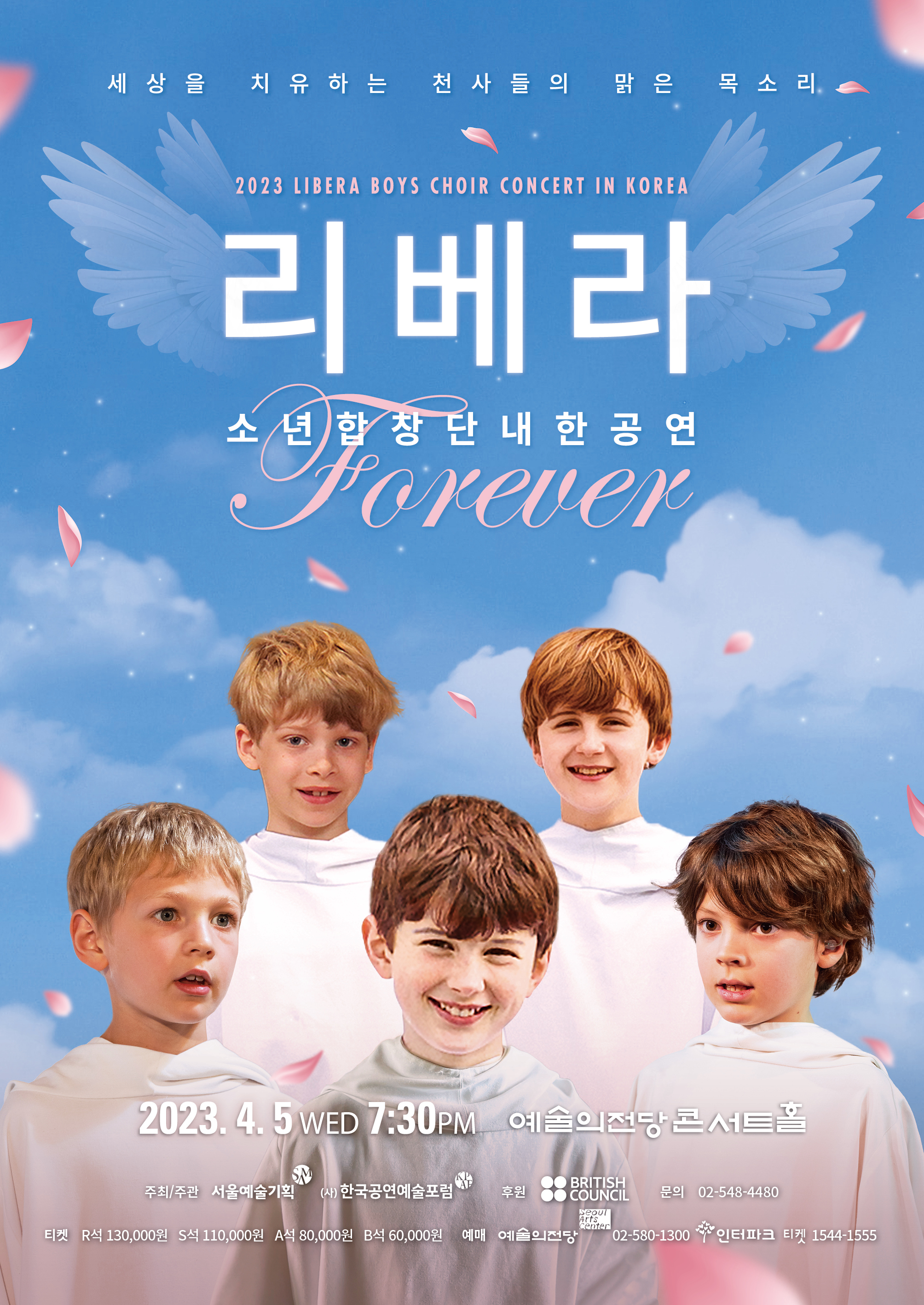 ★월요일부터 금요일까지 생방송 중에 50원의 정보이용료가 부과되는 # 9390 문자로 <공연 제목>과 <본인 성함>을 정확히 적으셔서 신청해주세요. 당첨자 분들에게는 개별적으로 당첨안내문자를 보내드립니다.★ 1. 일시 : 2023년 4월 5일 (수) 저녁 7시 30분 2. 장소 : 예술의전당 콘서트홀 3. 초대인원 : 5쌍 (1인 2매, 총 10매) 4. 작품설명 : 2023 리베라 소년합창단 내한공연 신비로운 소년 소프라노의 정점, 영국 리베라 소년합창단이 내한공연을 가진다. 순수하고 아름다운 목소리로 전세계인의 사랑을 받고 있는 영국 런던 남부출신의 소년들 ‘리베라’는 유럽에서 ‘현대의 모차르트’라 불리는 천재 지휘자 겸 음악감독 로버트 프라이즈만(Robert Prizeman)이 결성한 소년합창단이다. 리베라 특유의 깨끗하고 맑은 음색과 수려한 반주의 만남은 신비한 느낌을 더해주며 이러한 특징이 두드러지는 ‘Sanctus’,‘Walking in the Air’, ‘Far away’ 등의 곡은 20여 개가 넘는 국내 유명 CF 광고 음악으로 사용되는 등 각종 미디어 매체에서 끊임없이 러브콜을 받고 있다. ‘리베라(Libera)’는 라틴어로 ‘자유’를 뜻하며 특정 학교나 종교단체의 형식에 구애 받지 않고 클래식, 성가, 중세음악, 현대음악 등 다양한 장르를 아우르며 리베라 만의 색깔로 음악을 구현한다. 소년 소프라노를 중심으로 난이도 높은 음역대의 편곡은 천상의 음악이라는 평가를 받게 해주며 이는 세계 유수의 소년합창단 중 유일한 빌보드 클래식 차트 1위로 이어졌다. 또한 엘튼 존, 파바로티 등과 함께 노래했으며 플레이스테이션 게임 배경음악 녹음 등 폭넓은 영역에서 꾸준히 음악성을 인정받고 있다. 이번 공연은 파헬벨의 캐논을 편곡하여 리베라의 장기인 고음을 한껏 활용한 ‘Sanctus’, 중세의 신비로움 위에 현대적인 감각을 가미한 ‘Voca Me’, 성체를 찬미하는 기도문을 가사로 하여 리베라만의 독특한 효과를 나타내는 ‘Ave Verum’, Herbert의 시 ‘The call’을 바탕으로 만들어진 ‘Come my way’ 등으로 구성되어 있다. 리베라 소년합창단의 공연에는 타 소년합창단의 공연과는 다른 특별한 점이 있다. 20~24명 사이의 소년들이 피아노 솔로 반주에 맞추어 어쿠스틱한 음악의 아름다움을 들려주는 보통의 소년합창단과는 다르게 30명의 소년들이 피아노, 바이올린, 첼로, 플루트, 오보에, 드럼 등 12명의 챔버오케스트라 반주에 맞춰 보다 풍성한 음악을 표현한다. 또한 매 곡에 어울리는 조명효과를 더해 콘서트식으로 공연을 연출하여 몽환적이고 환상적인 분위기를 만든다. 이번 내한공연은 지난 2021년 9월 리베라 소년합창단의 창립자이자 작곡가, 정신적 지주였던 로버트 프라이즈만이 작고 한 이후 이뤄지는 리베라의 첫 해외공연이며, 기존에 많은 사랑을 받았던 곡들과 함께 올 3월 발매 예정인