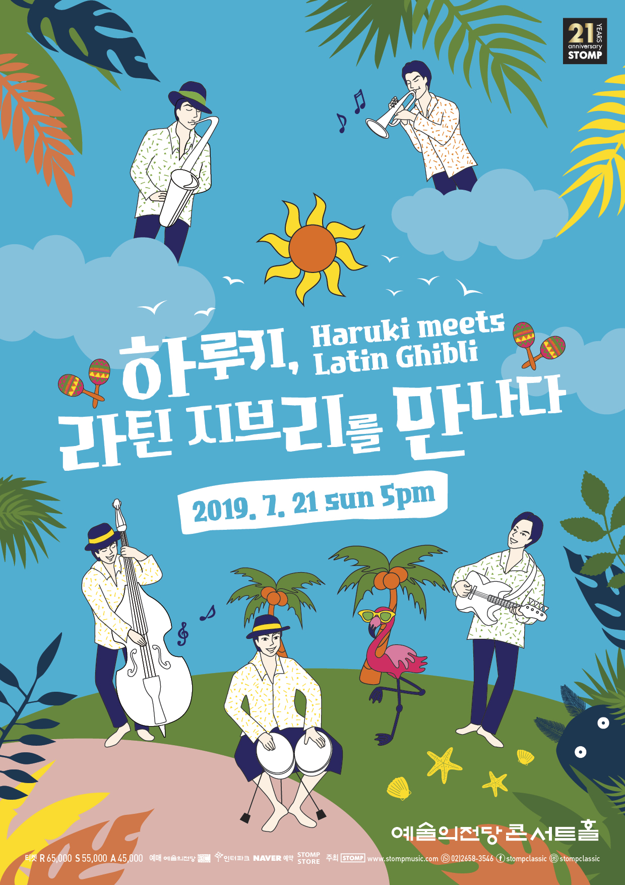 팬들을 많은 팬들을 거느린 ‘스튜디오 지브리’의 애니메이션. ‘무라카미 하루키’와 미야자키 하야오의‘스튜디오 지브리’ 작품에서 빼놓을 수 없는 것이 바로 음악 이다. 소설가 이전에 재즈 바를 운영했던 하루키는, 스스로도 ‘음악은 내 인생의 가장 중요한 요소’ 라고 말하며 실제로 그의 작품에서 중요한 장치로 작용한다. 또한 미야자키 하야오의 지브리 명작 애니메이션 작품 속에서도 서정적이고 마음을 흔드는 음악이 극의 분위기를 주도하는 큰 역할을 한다. 특히 올해 2019년 여름은 다시 한번 우리의 마음을 뒤흔들 지브리의 음악을 ‘라틴재즈’ 장르로 새롭고 정열적인 음악들로 만나보자.