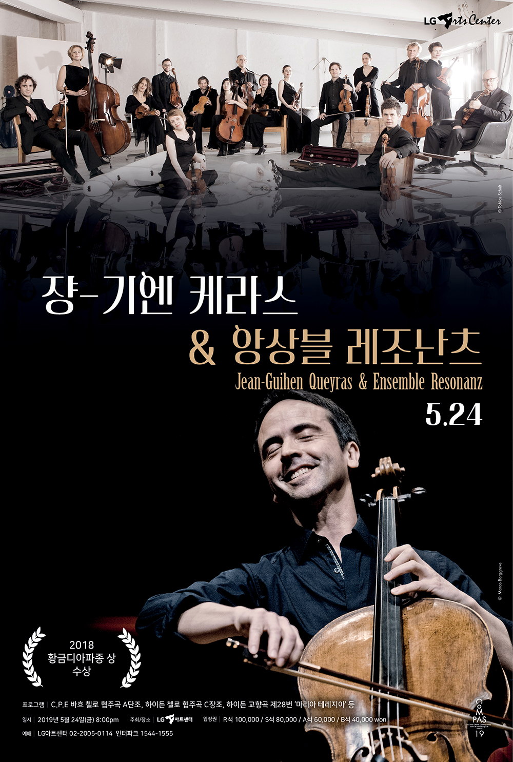 솔로에서 실내악까지, 그리고 바로크에서 현대까지 전방위 연주자로 세계 무대를 누비고 있는 첼리스트 쟝-기엔 케라스(Jean-Guihen Queyras, 1967년생, 프랑스)가 이번엔 자신과 오랫동안 호흡을 맞춰온 함부르크의 “앙상블 레조난츠(Ensemble Resonanz)”와 함께 국내 팬을 찾아온다.