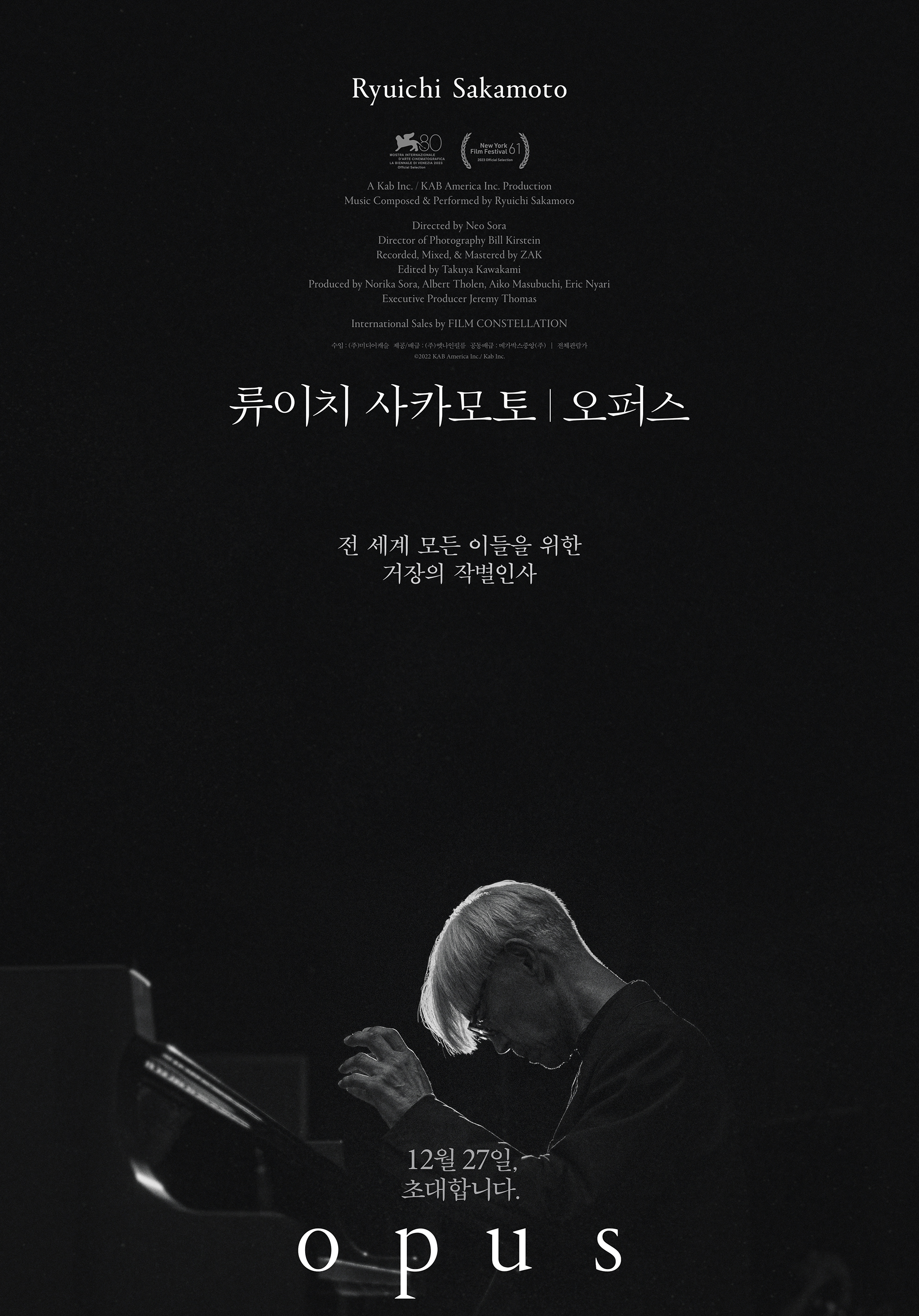 마지막 연주를 만날 수 있는 <류이치 사카모토: 오퍼스> 예매권 드립니다.