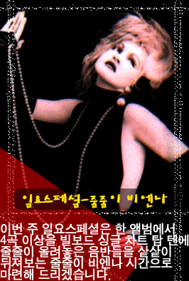 <일요스페셜-줄줄이 비엔나> 이번 주 일요스페셜은 한 앨범에서 4곡 이상을 빌보드 싱글 차트 탑 텐에 줄줄이 올려놓은 음반들을 샅샅이 뒤져보는 줄줄이 비엔나 시간으로 마련해 드리겠습니다. <김형준의 FM POPS에서 드리는 음악 선물> * 선물을 원하시는 분께서는 정확한 성함과 주소, 그리고 우편번호를 반드시, 필히, 꼭, 그리고 무조건 남겨주세요.