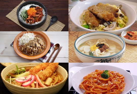 돈가스덮밥, 오므라이스,스파게티, 만두국, 잔치국수