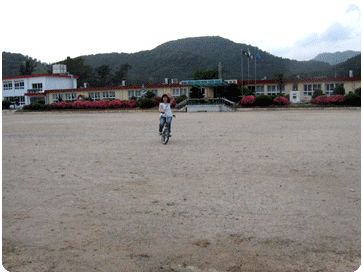 학교 운동장을 자전거로 달리던 사진이예요 으하하