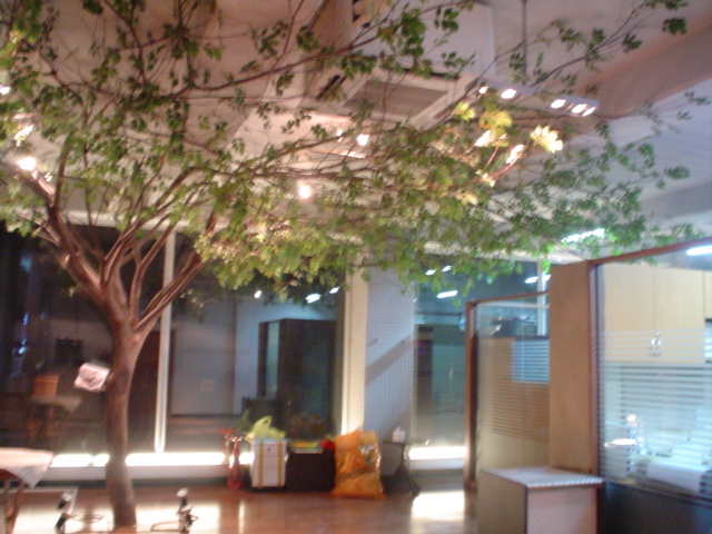 사무실 중간에 커다란 느티나무가 서있고 전 나뭇잎아래서 야경이 내려다 보이는 사무실서 야근을 합니다.