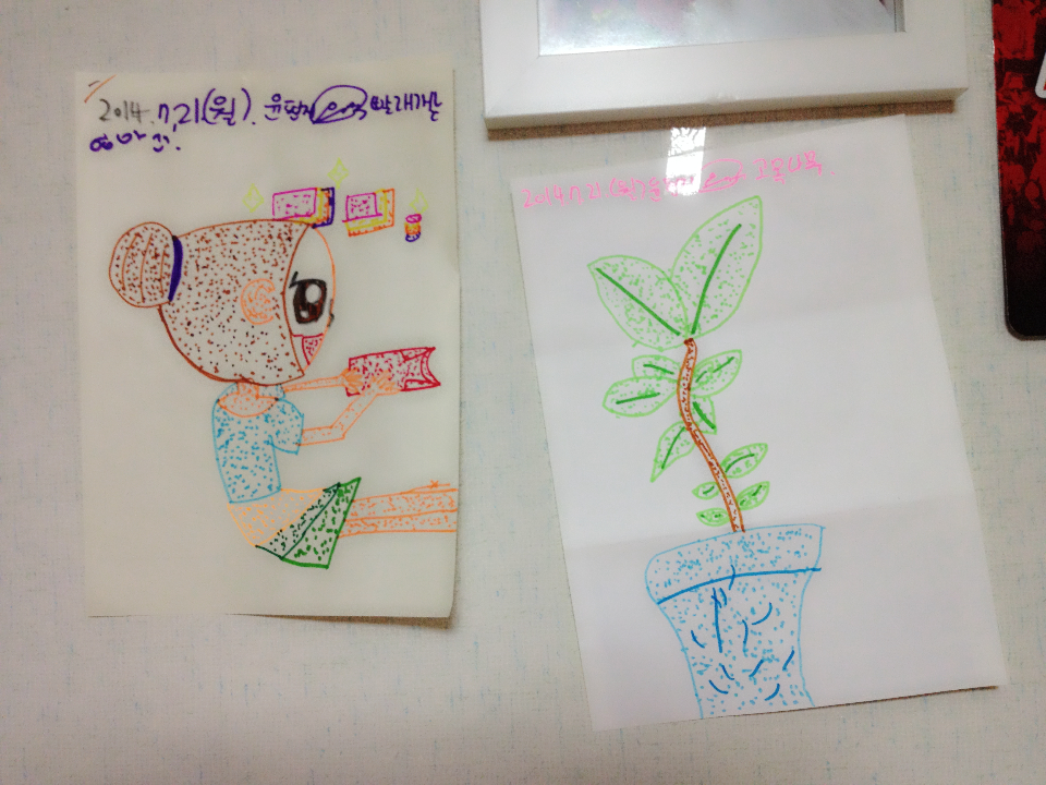 다 그리고나서 제목을 붙이고, 날짜, 이름까지 적어 벽에 붙여놓았지요.